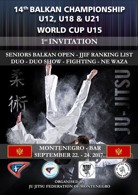 V Baru bo v organizaciji Ju-jitsu zveze Črne gore med 22. in 24. 9. potekal Svetovni pokal za U15 in JJIF ranking tekmovanje za člane. Prvo vabilo v prilogi.